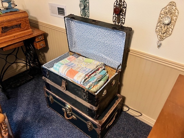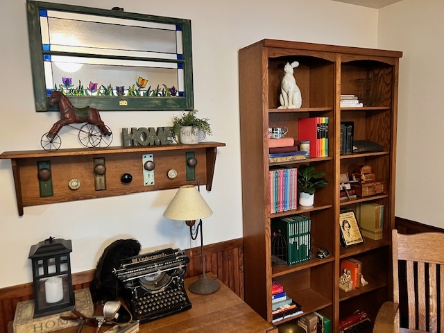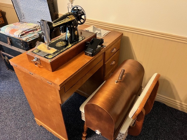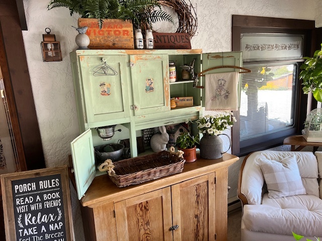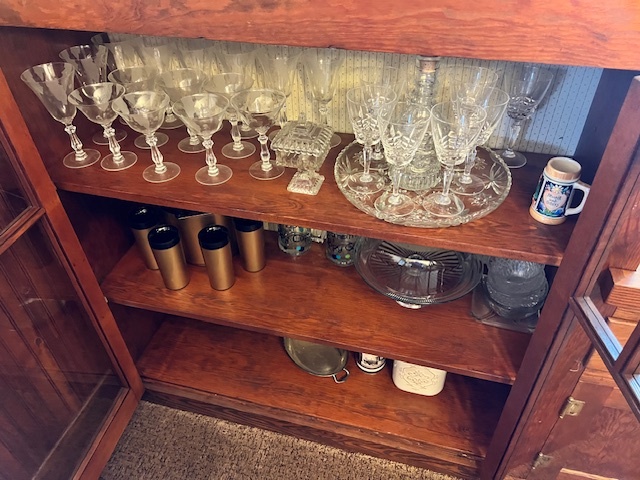 COLLECTIBLES: Vintage Pine Kitchen Cupboard/Hoosier, Royal Crown Wood Bottle Box, Milk Cans, Oak Library Table/Desk, Underwood Typewriter, Oak Curved Glass Secretary, Oak Upholstered Bench, Oak Farm Table w/(6) Chairs, Branding Irons, Cow Bell, Horse Collar Mirror, Vintage Horse Bits, Steamer Trunk, Vintage Sewing Machine Collection, Vintage Floor Lamps, Art Deco Chest, BSU Collection-Jersey, Bobbleheads, Memorabilia, Lawyers Bookcase, Vintage Holiday Blow Mold Collection, Vintage Washing Machine, Yard Art, Signs/Decor….AND MUCH MORE!