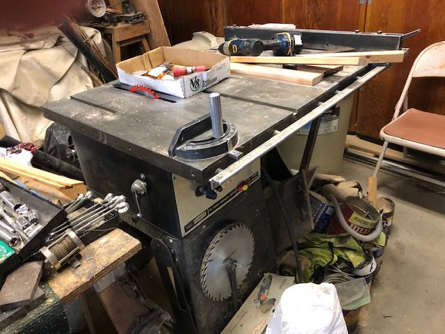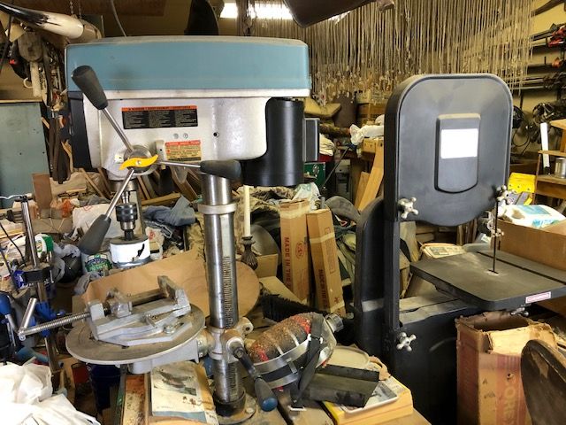 Band Saw, Craftsman 10” Table Saw, Buffing/Polishing Station, Pipe & C