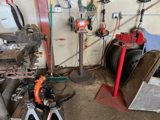 TOOLS/EQUIPMENT/SUPPLIES: 300 Gal. Fertilizer Tank w/Honda Pump, Water Pumps, Fertilizer Spreaders, (5) Welding Tables, Oxyacetylene Welder, Wheel Barrows, Knaack Box, Stihl N649 Hot Saw, MK Brick Saw, Extension/Step Ladders, Shop Carts, Stick Welder, Pallet of Fertilizer, Pallett of Snow Melt. OFFICE: Hp Printer, Desks, Chairs.