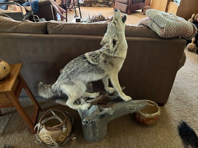 Elephant Hide, Record Spring Buck, Pheasant, Buffalo Rug. HOME: Mission Style Sofa